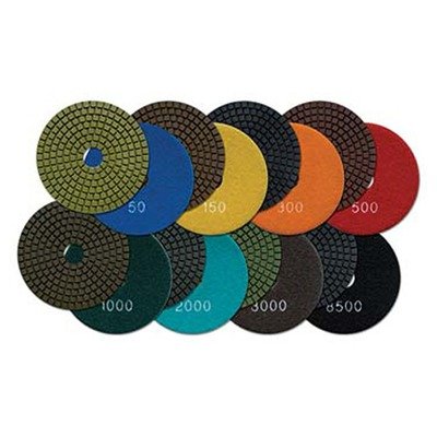 155957 Disc size: 5", Grit Size: 1000 Features: -Premium Resin Polishing Discs. -Designed to achieve a scratch-free highly polished finish on all straight or contoured granite and marble edges. -The Hook and Loop backing allows for fast disc changes. -Disc backs are color-coded for easy grit size identification. -White buff pad is used for final buff on light colored stone to prevent marking material. Specifications: -Item # 157108 - Grit: 50, Premium: 3'', Color: Blue. -Item # 157109 - Grit: 150, Premium: 3'', Color: Yellow. -Item # 157110 - Grit: 300, Premium: 3'', Color: Orange. -Item # 157111 - Grit: 500, Premium: 3'', Color: Red. -Item # 157112 - Grit: 1000, Premium: 3'', Color: Dark Green. -Item # 157113 - Grit: 2000, Premium: 3'', Color: Light Green. -Item # 157114 - Grit: 3000, Premium: 3'', Color: Brown. -Item # 157115 - Grit: Buff, Premium: 3'', Color: Black. -Item # 155796 - Grit: 50, Premium: 4'', Color: Blue. -Item # 155797 - Grit: 150, Premium: 4'', Color: Yellow. -Item # 155798 - Grit: 300, Premium: 4'', Color: Orange. -Item # 155799 - Grit: 500, Premium: 4'', Color: Red. -Item # 155800 - Grit: 1000, Premium: 4'', Color: Dark Green. -Item # 155801 - Grit: 2000, Premium: 4'', Color: Light Green. -Item # 155818 - Grit: 3000, Premium: 4'', Color: Brown. -Item # 155819 - Grit: Buff, Premium: 4'', Color: Black. -Item # 157250 - Grit: Buff, Premium: 4'', Color: White. -Item # 155876 - Grit: 50, Premium: 5'', Color: Blue. -Item # 155877 - Grit: 150, Premium: 5'', Color: Yellow. -Item # 155955 - Grit: 300, Premium: 5'', Color: Orange. -Item # 155956 - Grit: 500, Premium: 5'', Color: Red. -Item # 155957 - Grit: 1000, Premium: 5'', Color: Dark Green. -Item # 155958 - Grit: 2000, Premium: 5'', Color: Light Green. -Item # 155959 - Grit: 3000, Premium: 5'', Color: Brown. -Item # 155960 - Grit: Buff, Premium: 5'', Color: Black. -Max RPM: 3700. -Weight: 1 lbs.you looking for low price MK Diamond 155957 5-Inch 1000 Grit Premium Resin Polishing Disc, Dark Green?